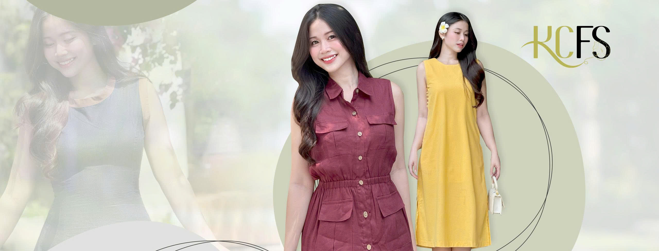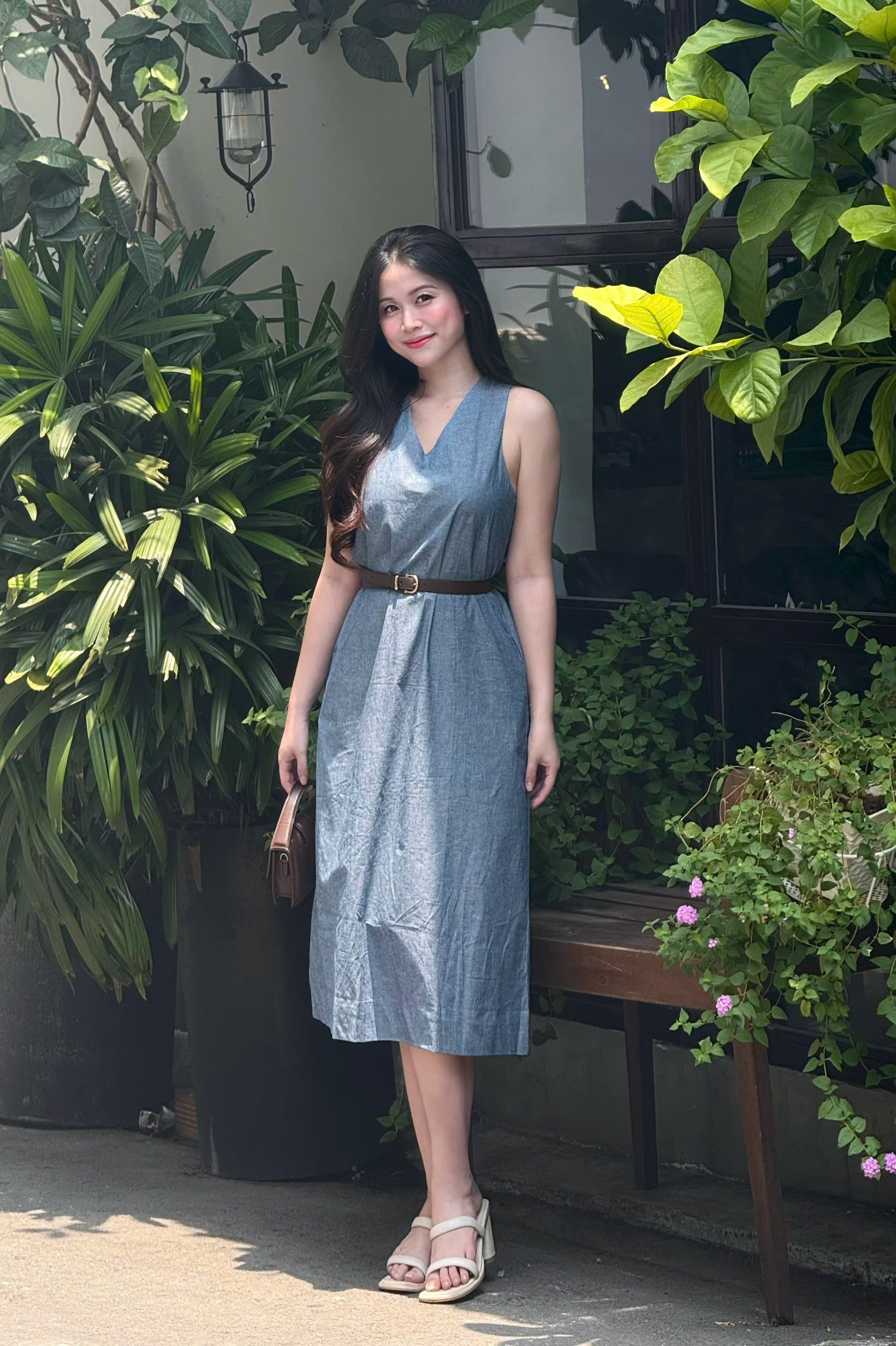 Đầm sát nách Linen 2 kiểu – Kiểu cổ V thanh lịch và kiểu cổ tròn thắt nơ dễ thương