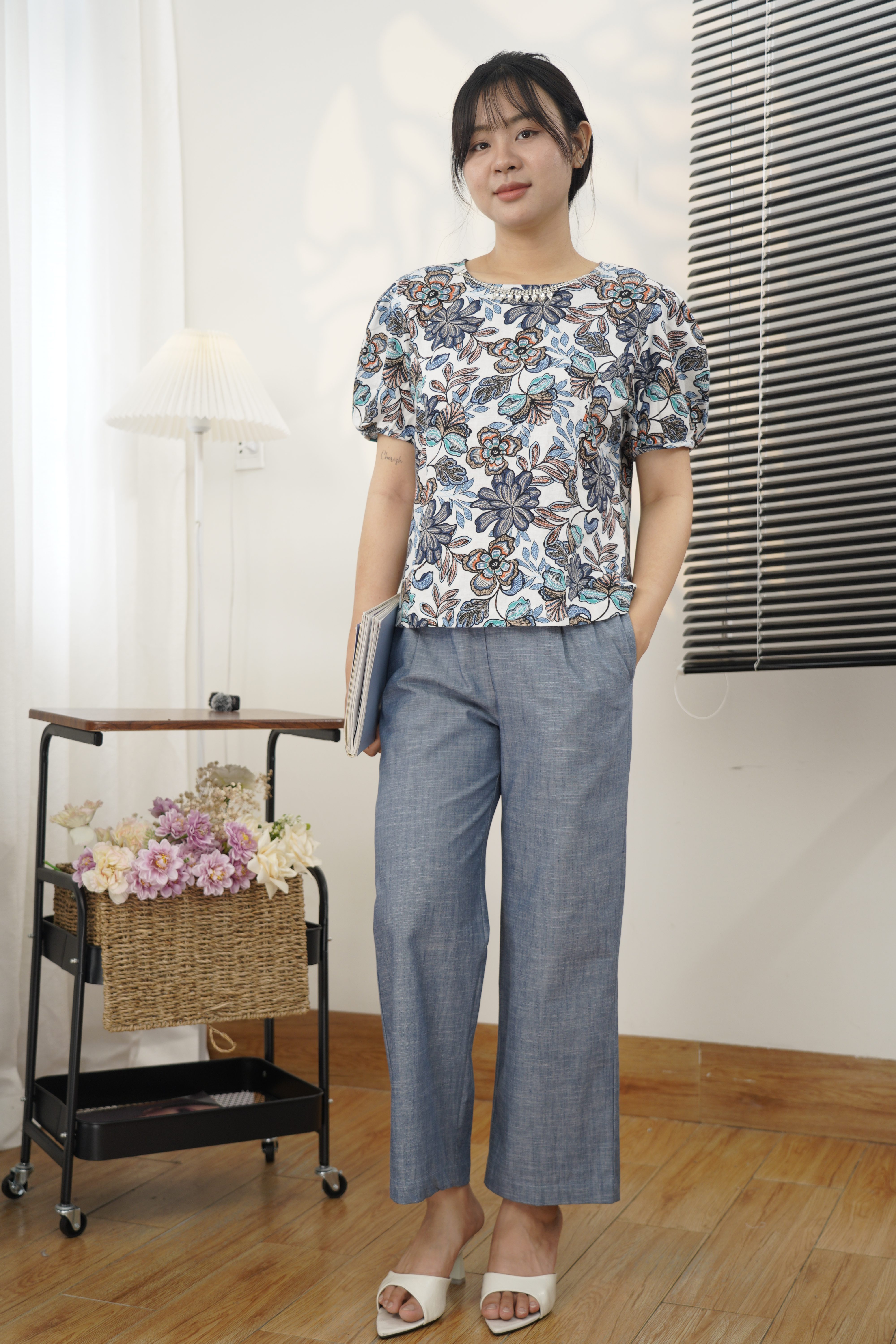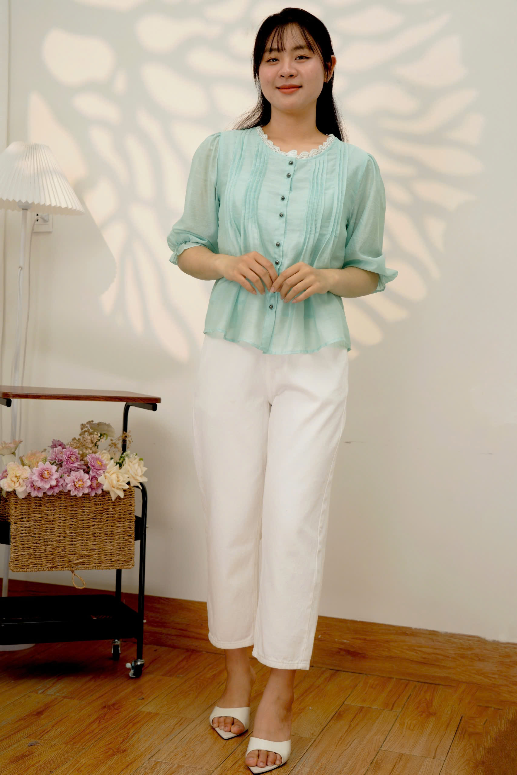 Áo tơ cotton vân phối tay thắt – Thiết kế tinh tế, chất liệu nhẹ mát,thanh lịch