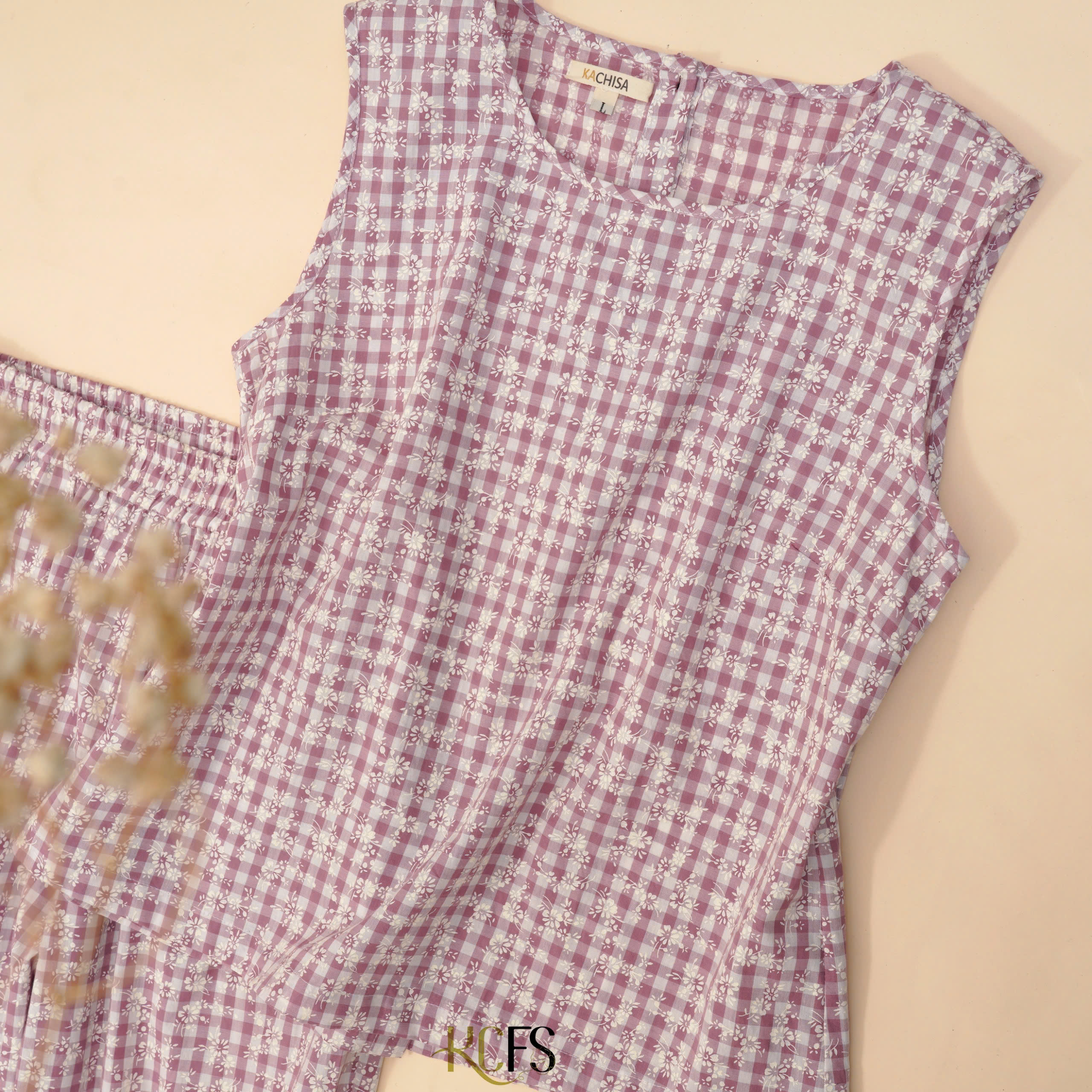 Set bộ Thô Cotton Áo sát nách & Quần suông thô cotton lưng chun nguyên vòng – Có lẻ áo & quần