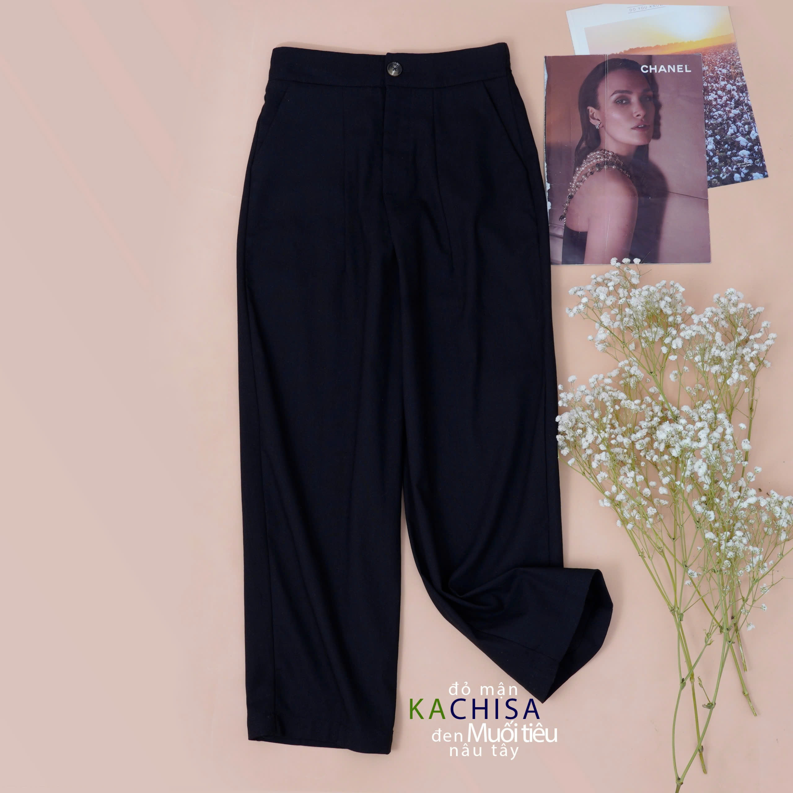 Quần Nữ Ống Suông Vải Bố Chéo Lưng Cao Thanh Lịch, chất bố chéo dày dặn, không nhăn