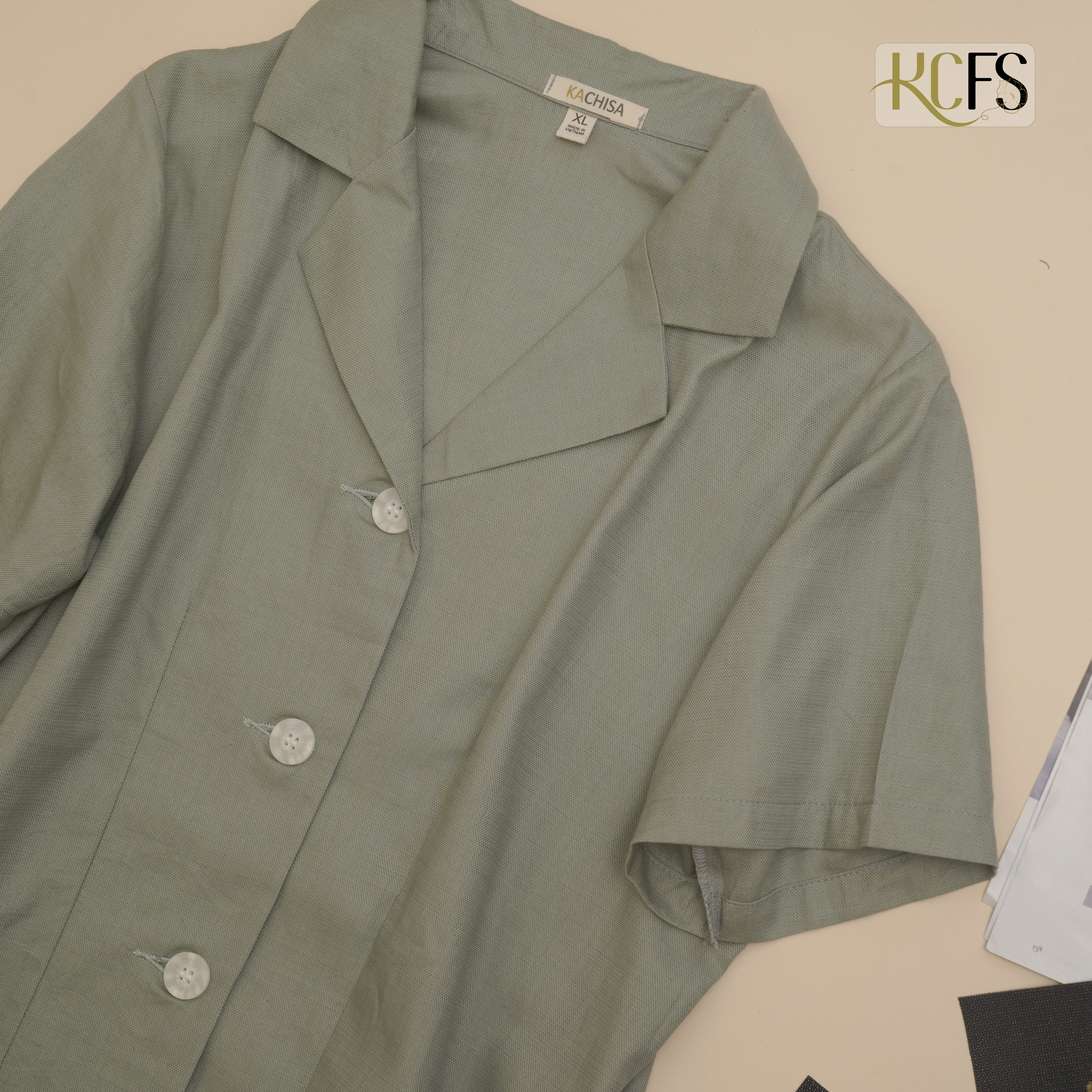 Cổ V nhẹ, sâu vừa đủ để tạo cảm giác thanh thoát phần cổ – giúp “kéo dài dáng”, làm gương mặt trông sáng và nhỏ hơn mà không gây hở hang.