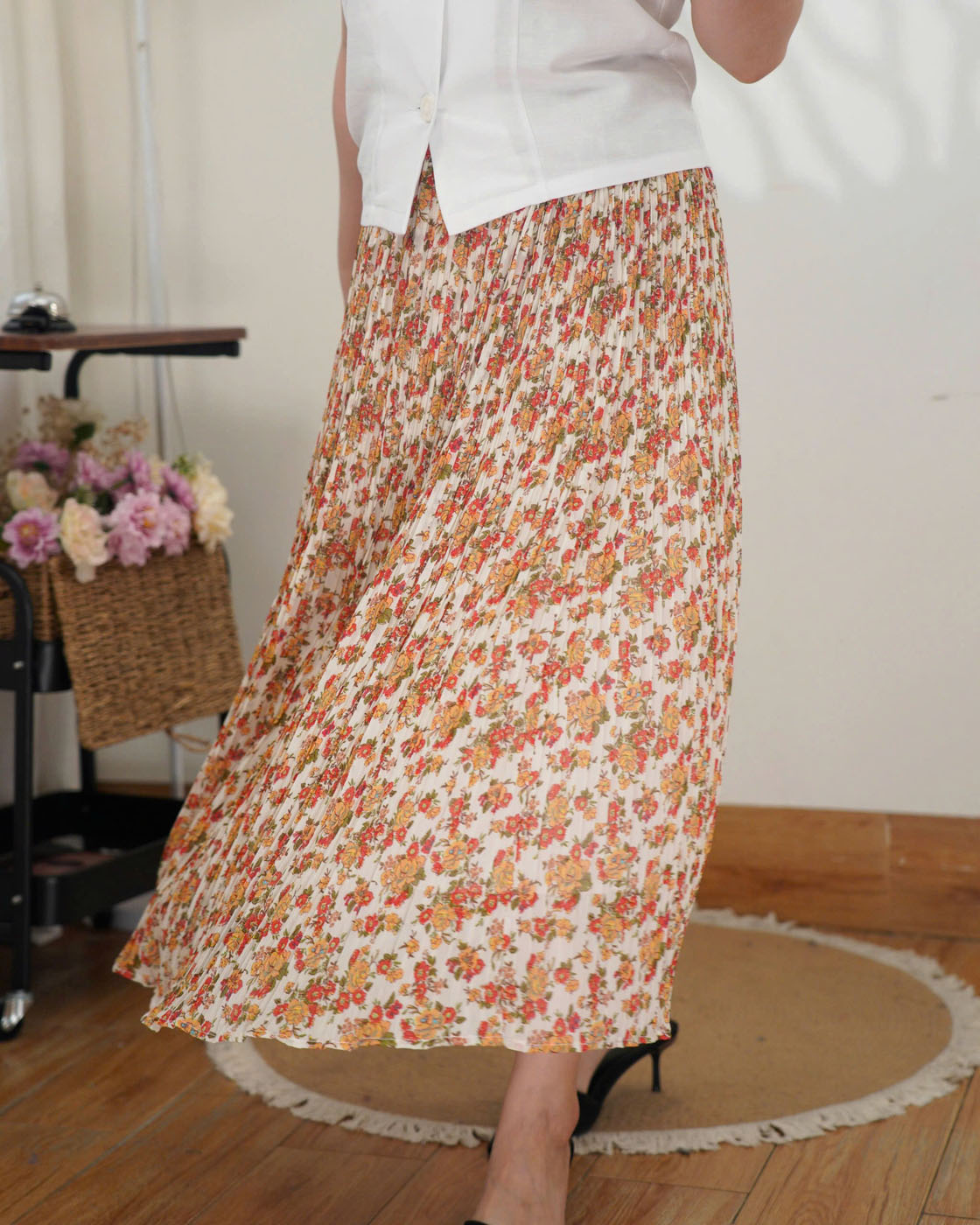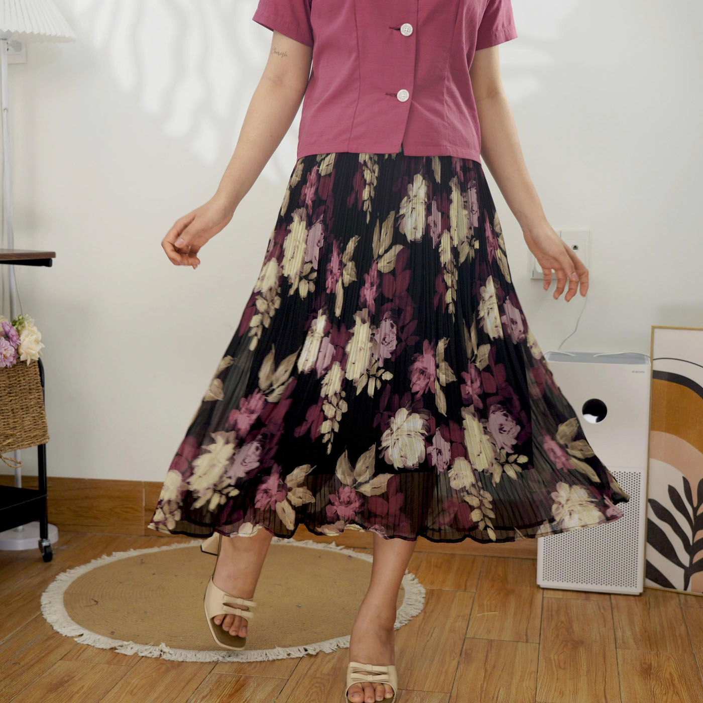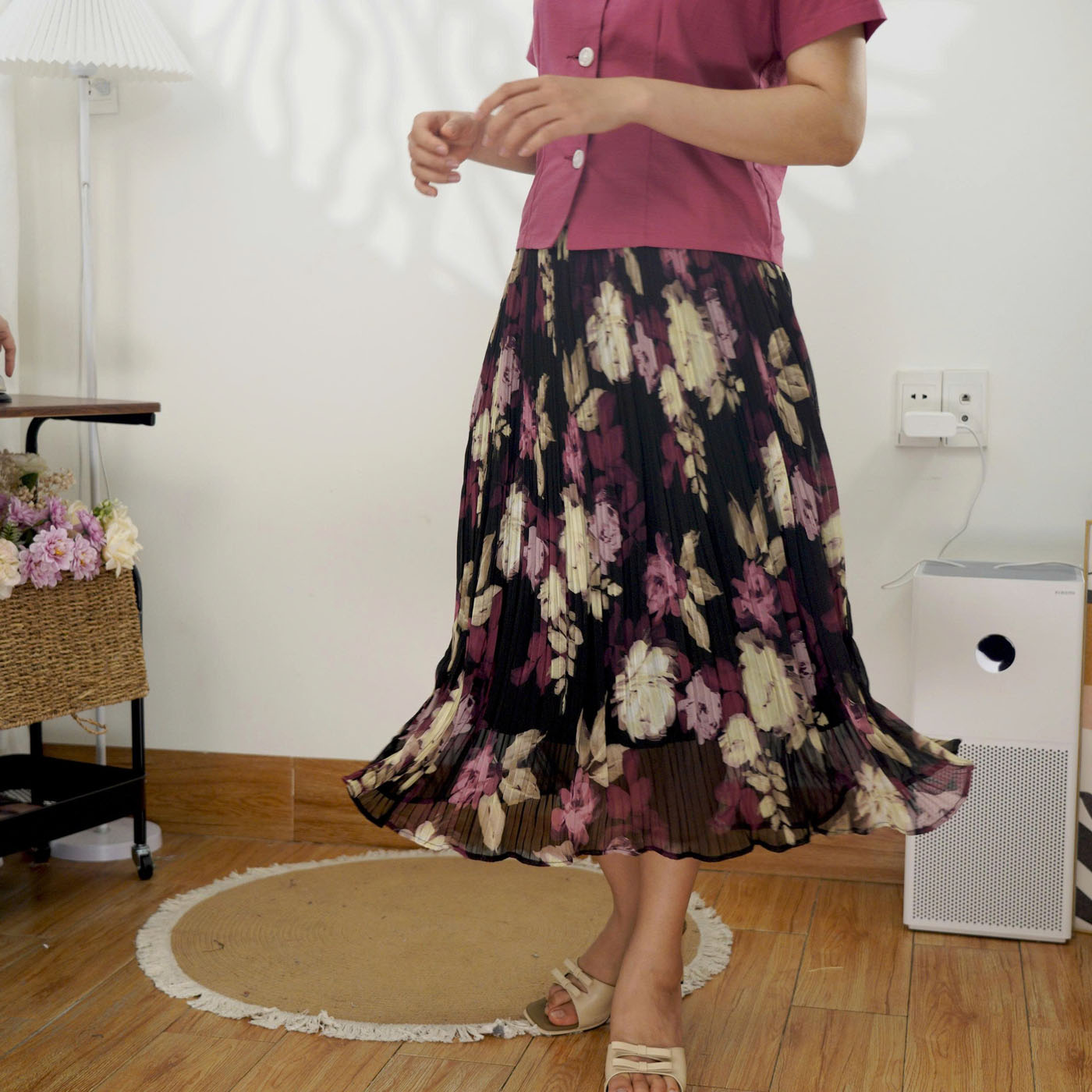Chân váy tơ in hoa dập ly 2 sóng – Biến từng bước đi thành khoảnh khắc thươt tha đầy cuốn hút