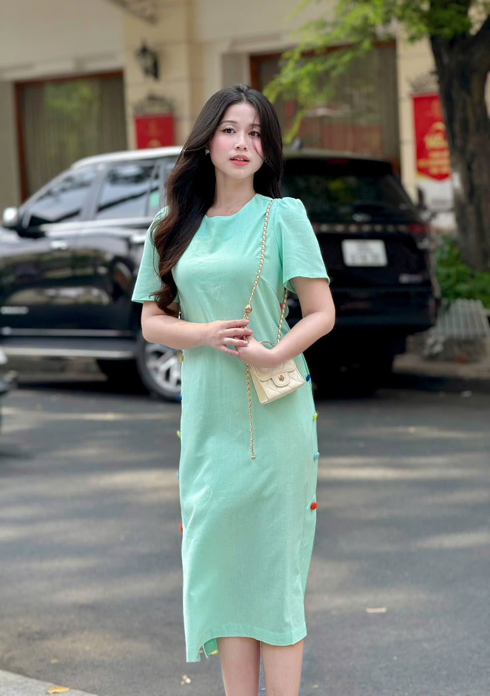 Với độ dài ngang gối đến qua gối nhẹ, đầm thích hợp cho nhiều dáng người: