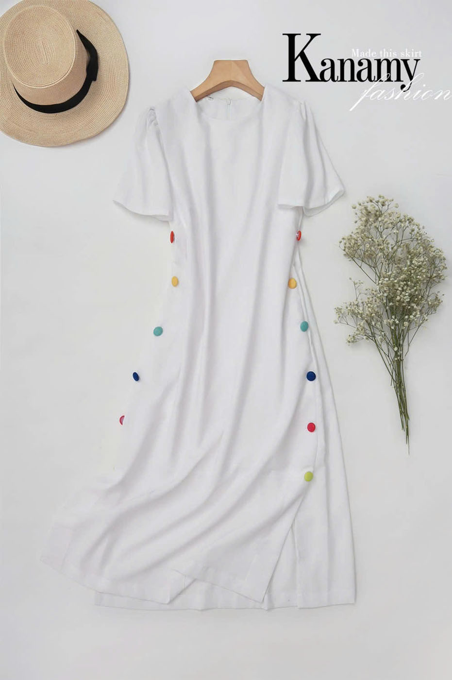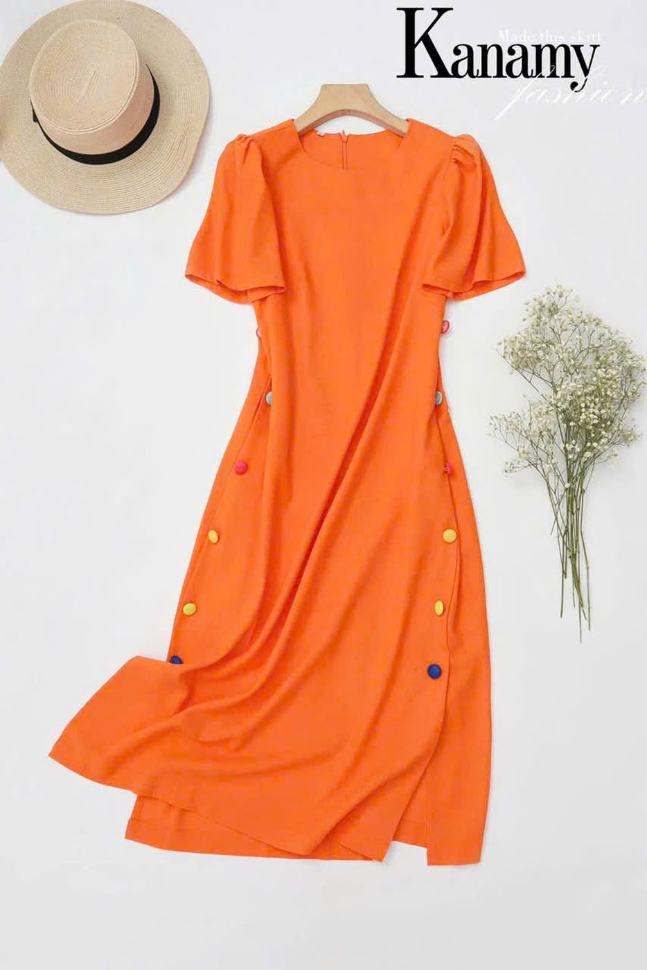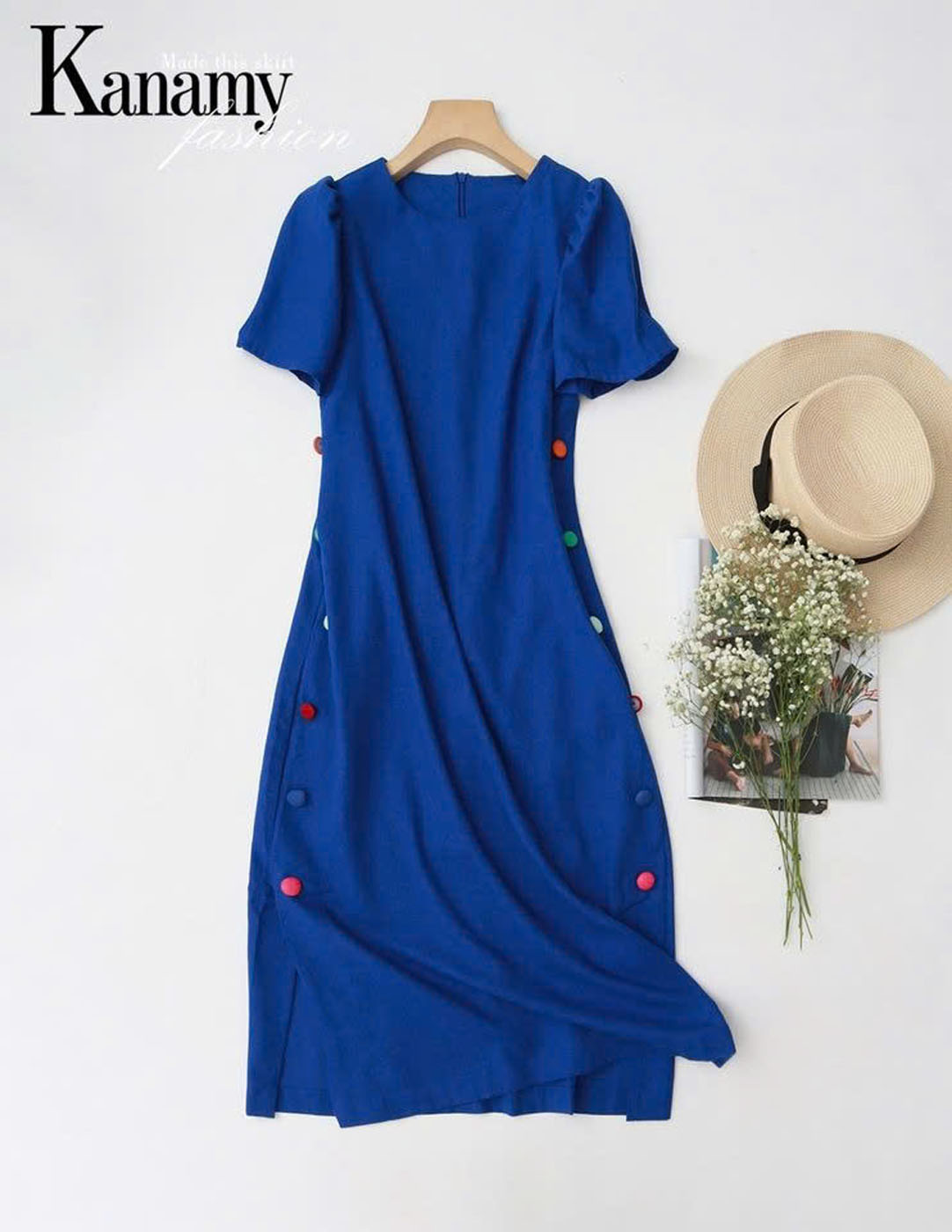 KCFS – ĐẦM SUÔNG LINEN BỘT PHỐI NÚT BỌC – TỰA NẮNG NHẸ CHIỀU THU