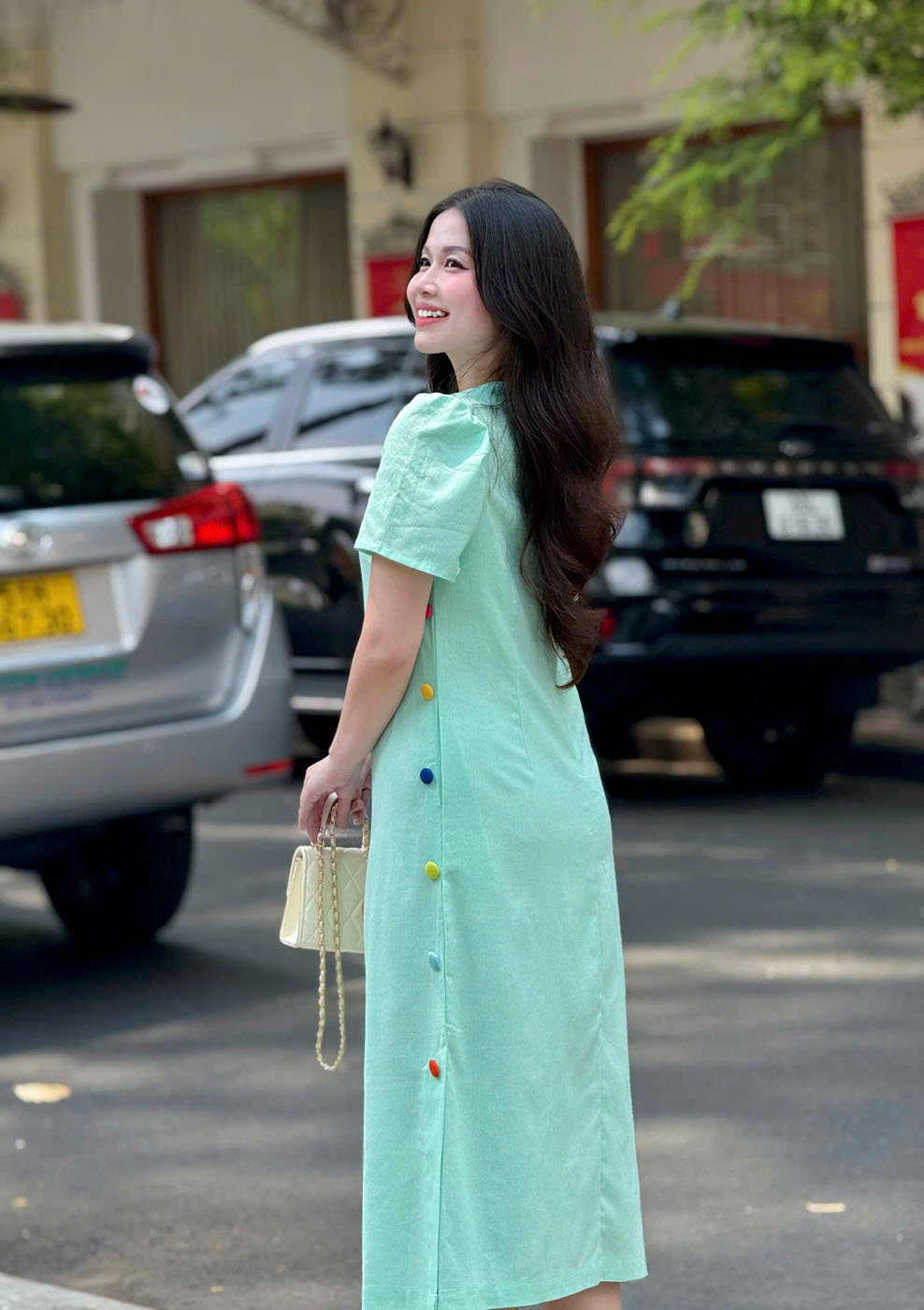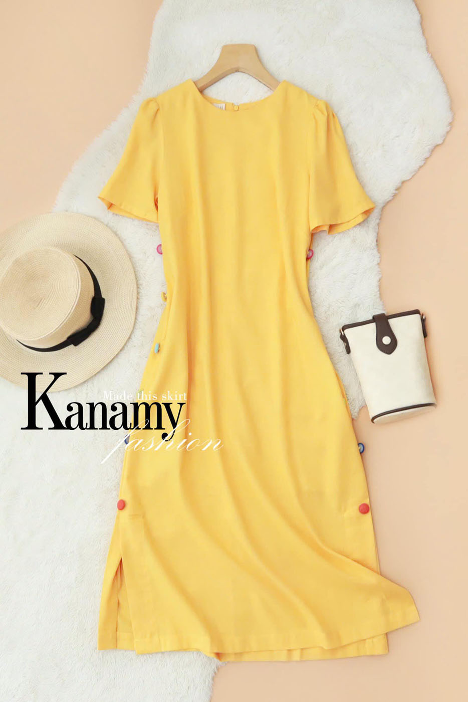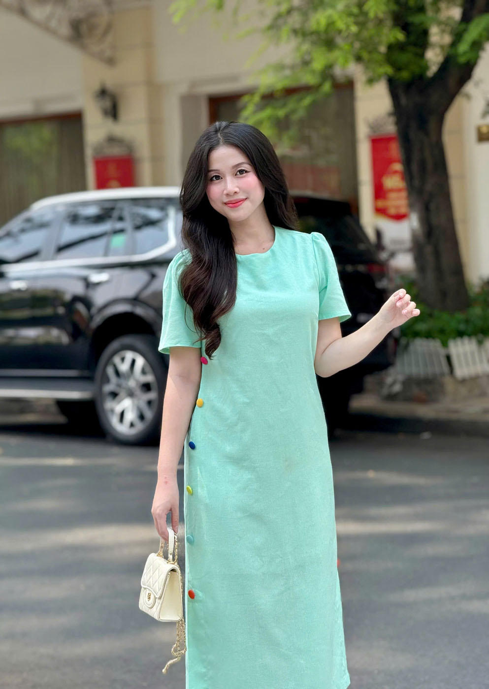KCFS – ĐẦM SUÔNG LINEN BỘT PHỐI NÚT BỌC – TỰA NẮNG NHẸ CHIỀU THU