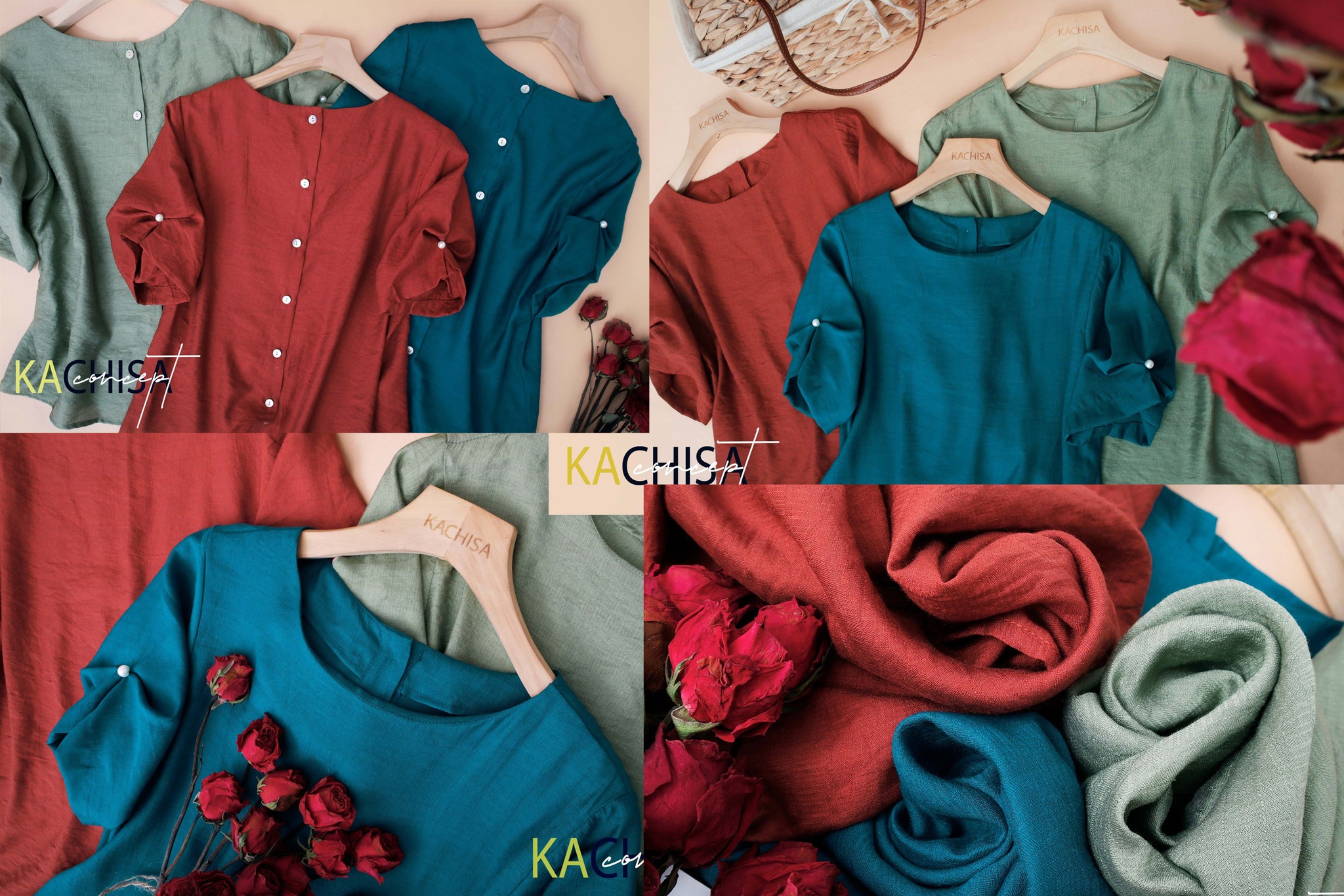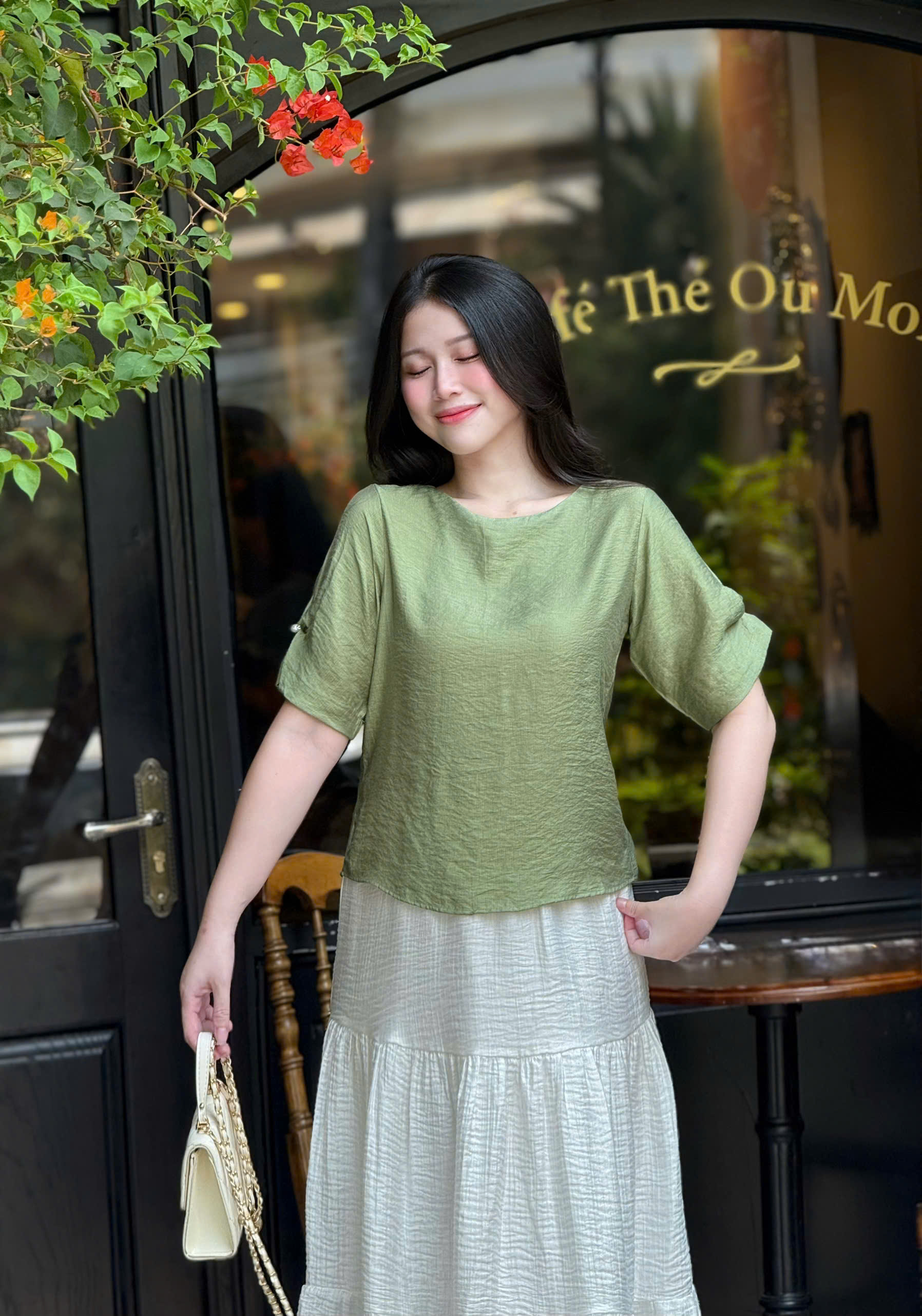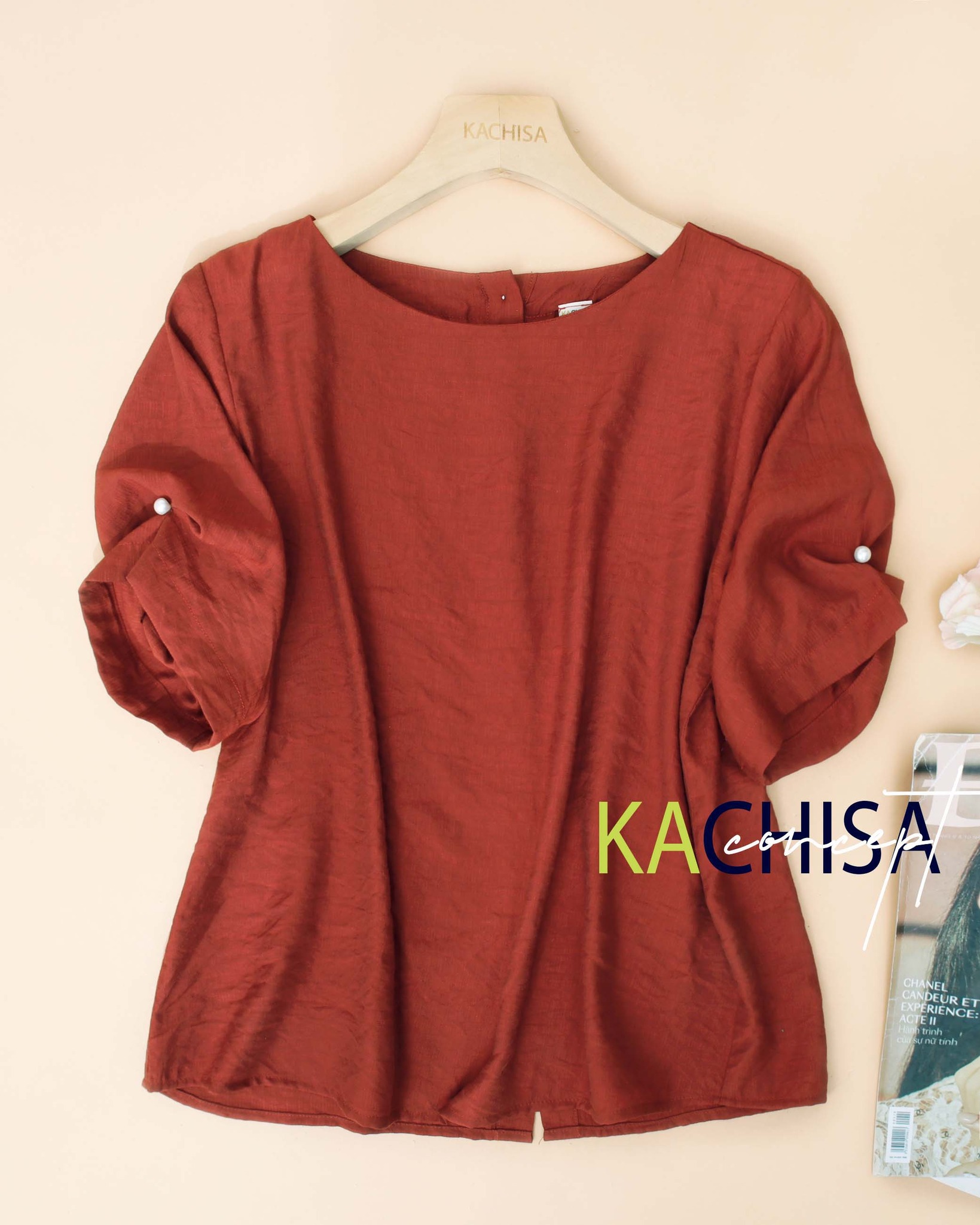 KCFS- Áo tơ cotton vân (dòng tơ với sợi cotton chải kỹ) phối tay thắt – Thiết kế tinh tế, chất liệu nhẹ mát, thanh lịch