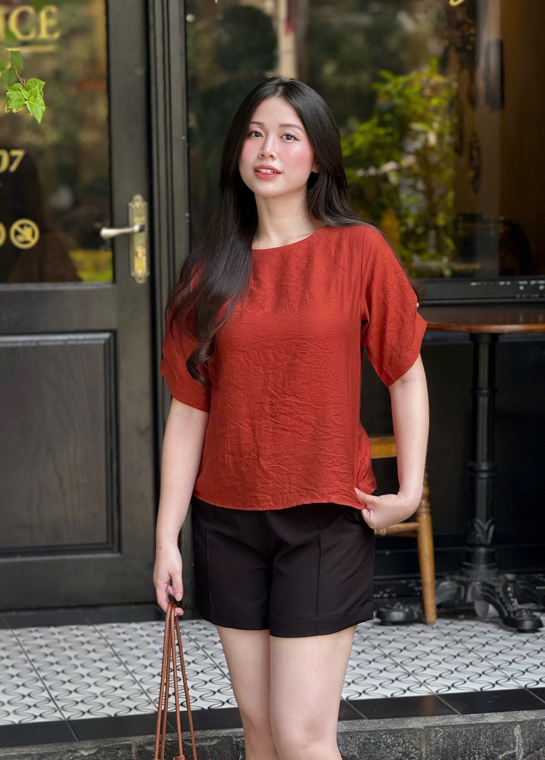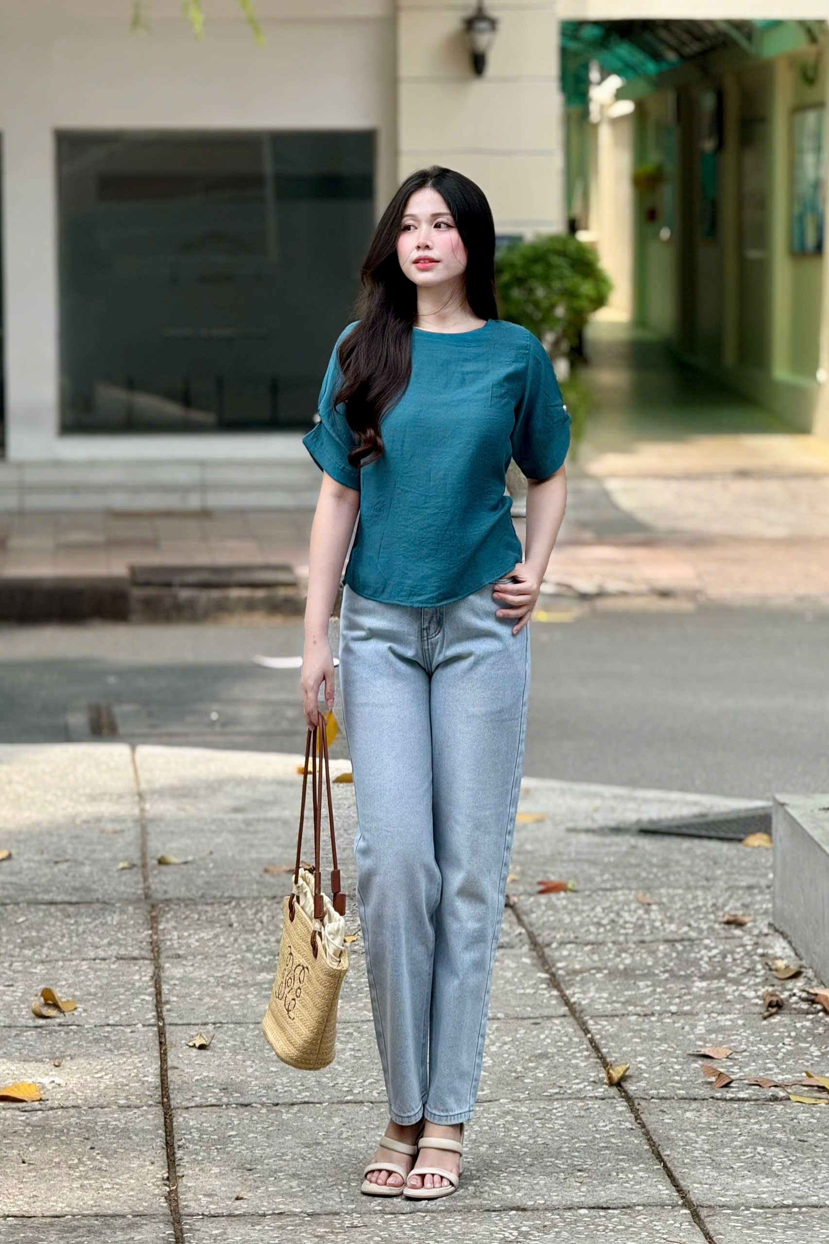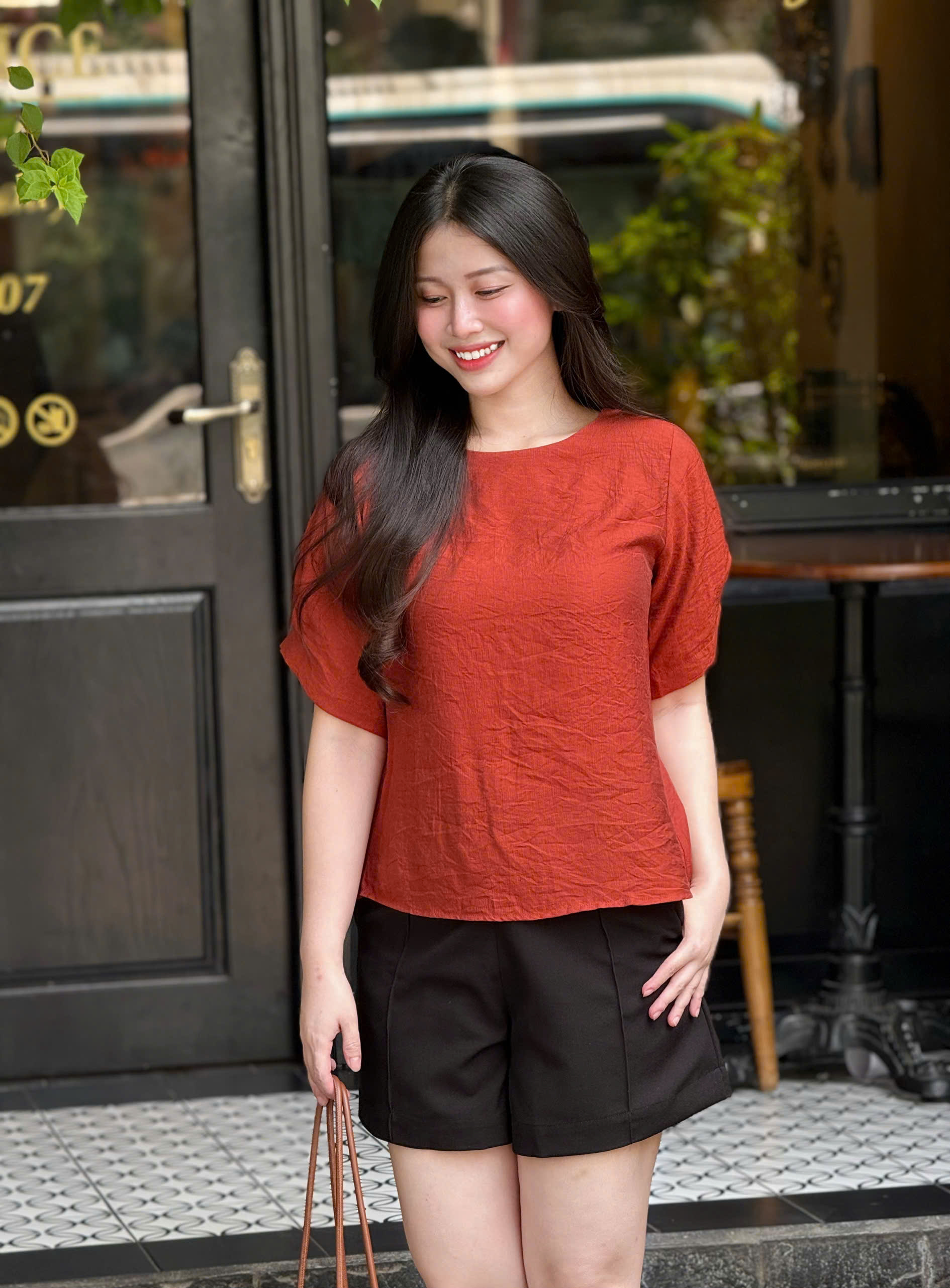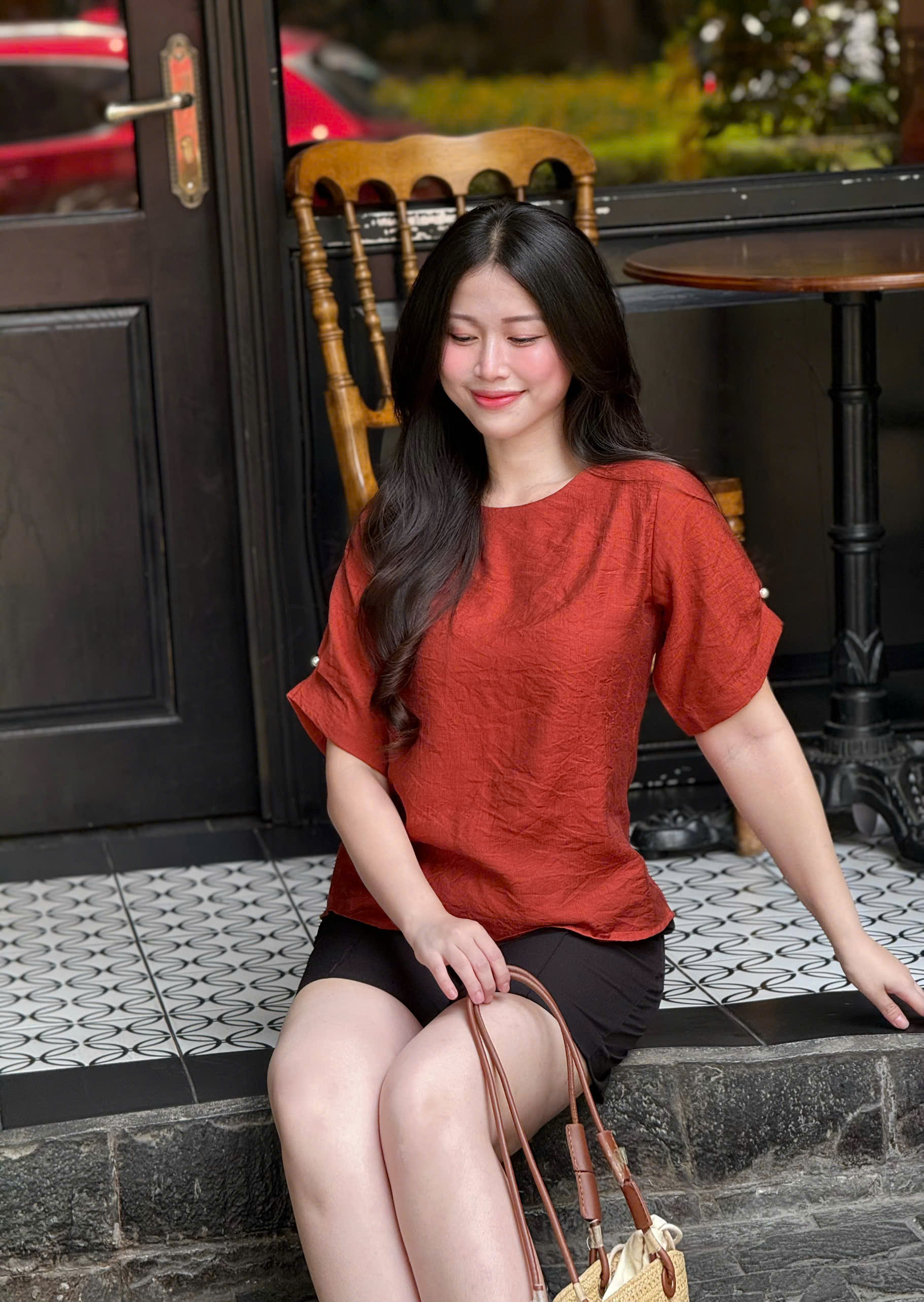 KCFS- Áo tơ cotton vân (dòng tơ với sợi cotton chải kỹ) phối tay thắt – Thiết kế tinh tế, chất liệu nhẹ mát, thanh lịch