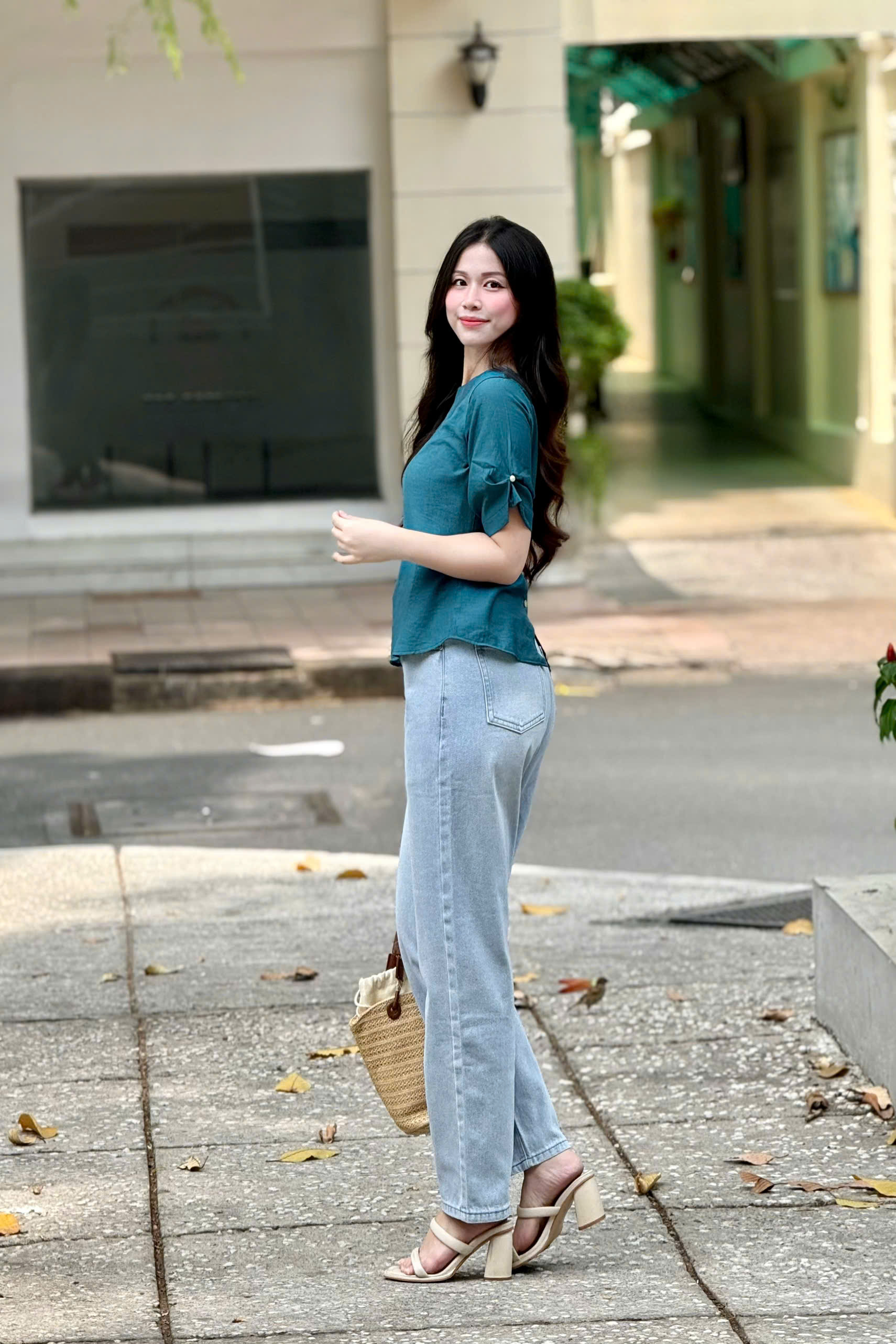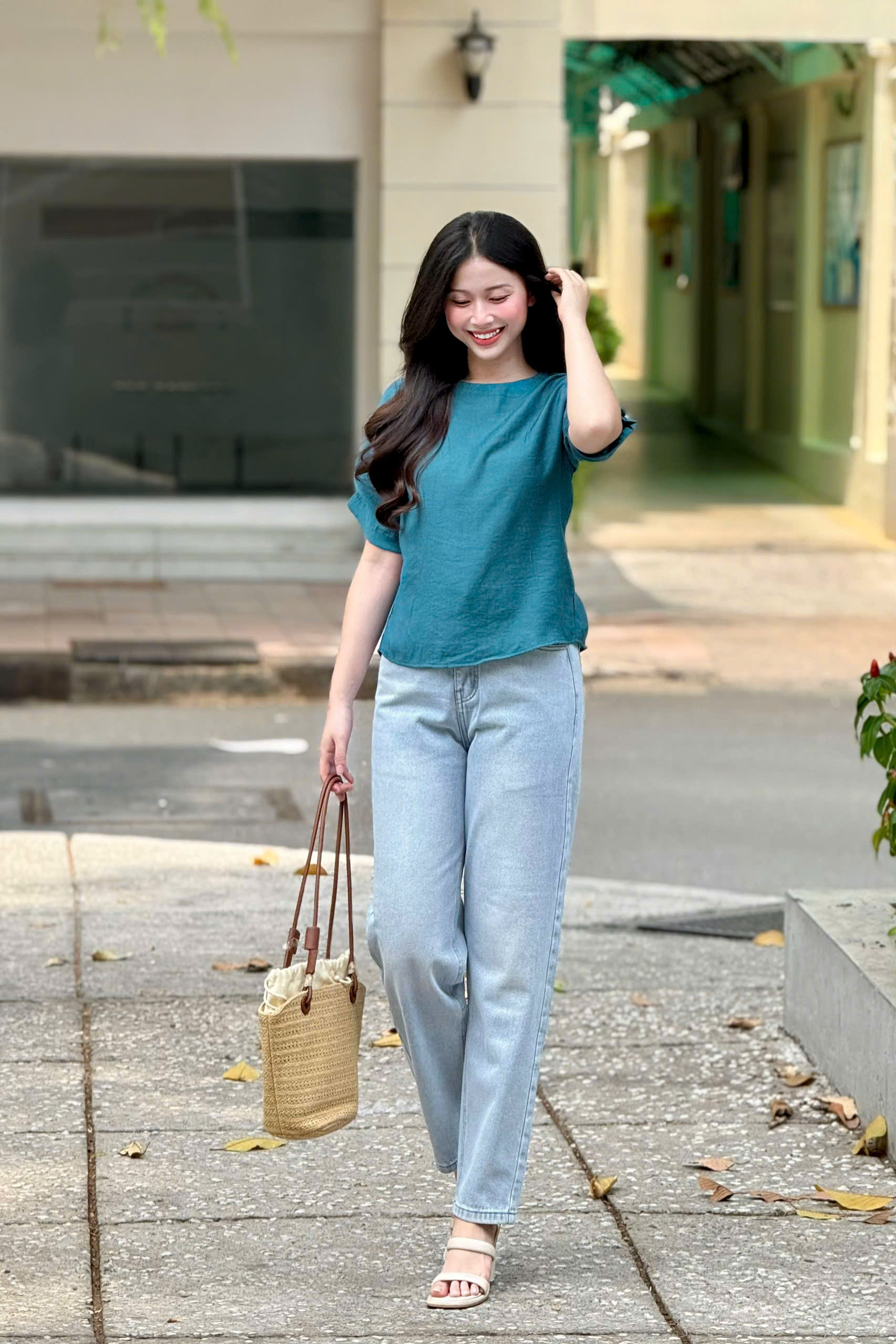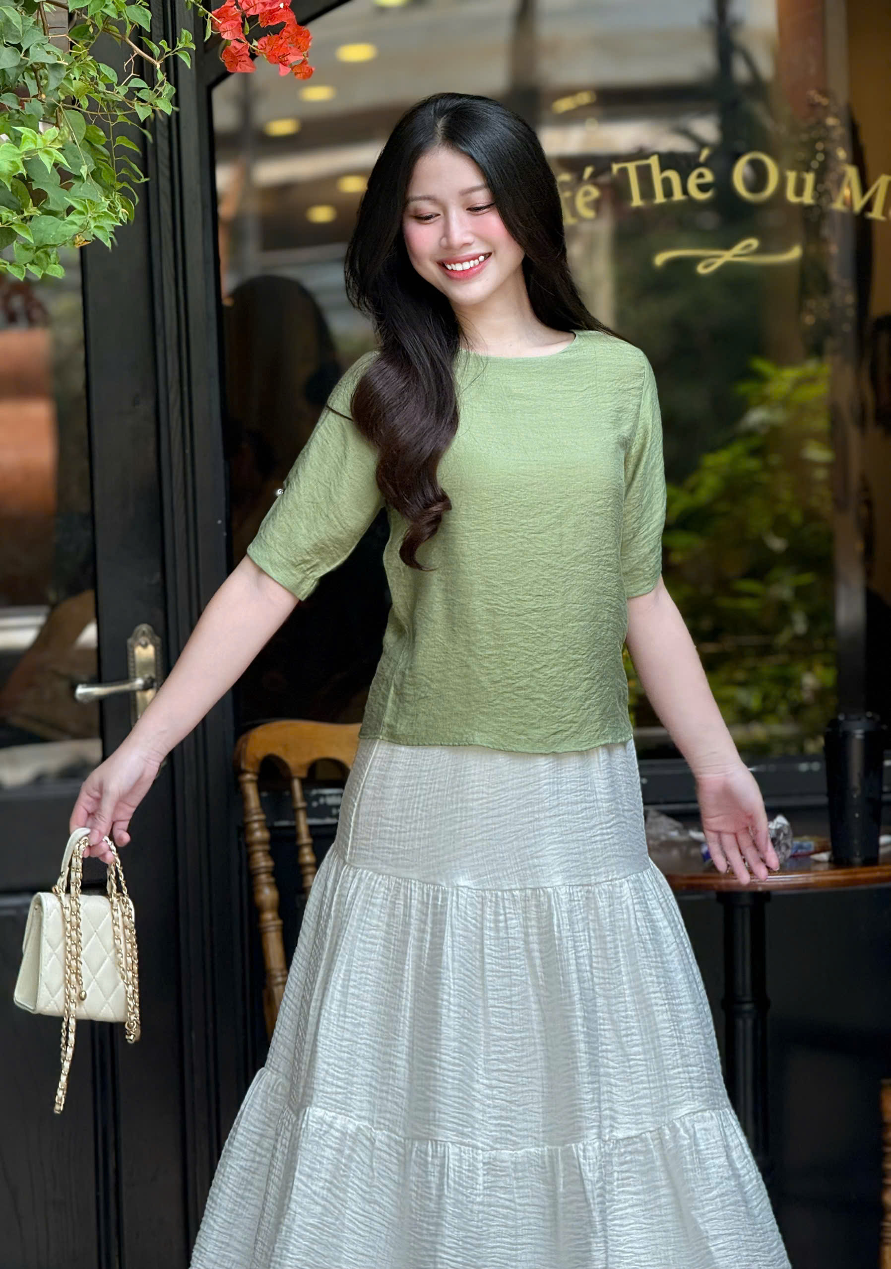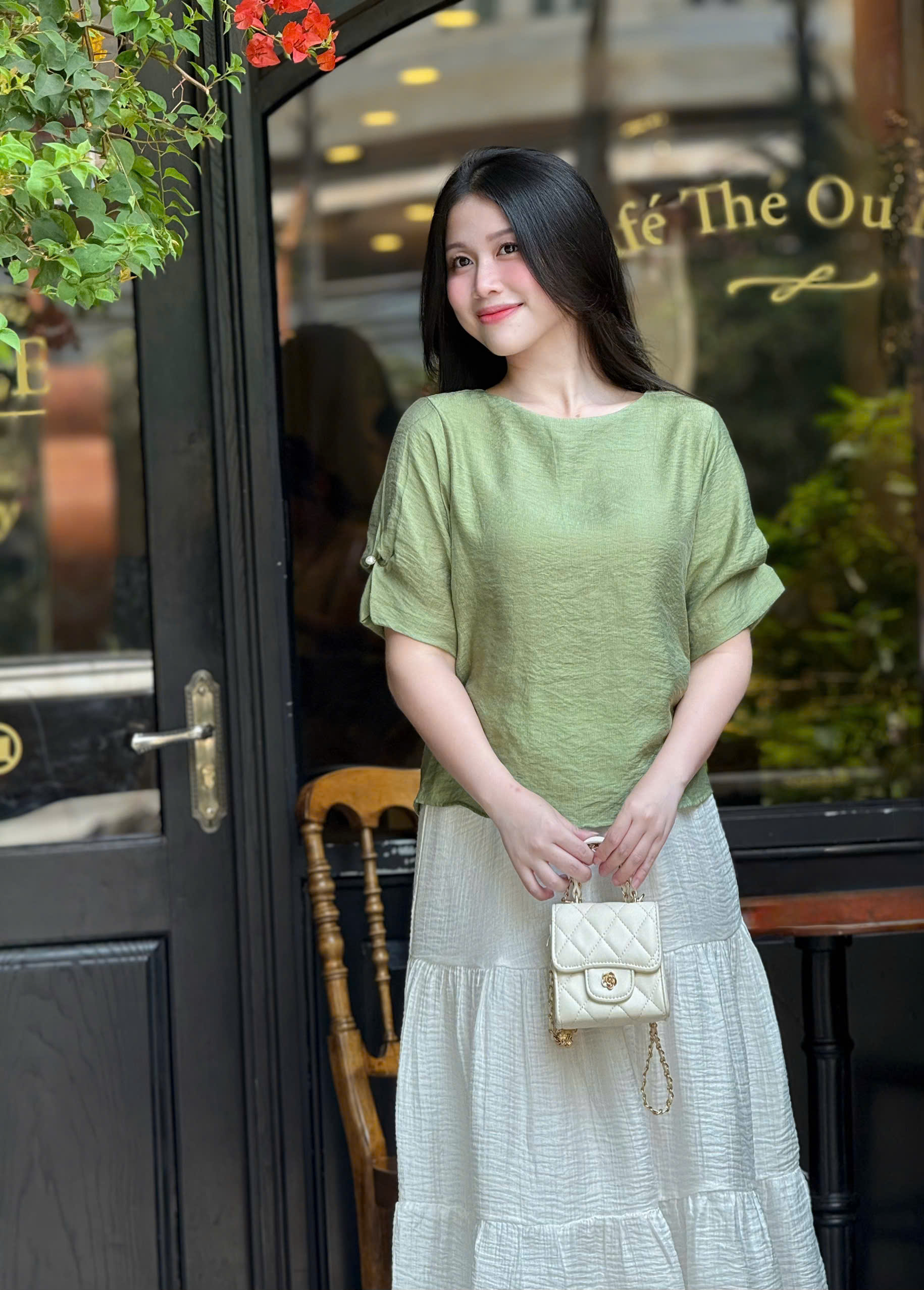 Tơ cotton có độ rũ vừa phải, giúp áo giữ được dáng thanh thoát, tạo cảm giác bồng bềnh, thanh tao khi di chuyển.