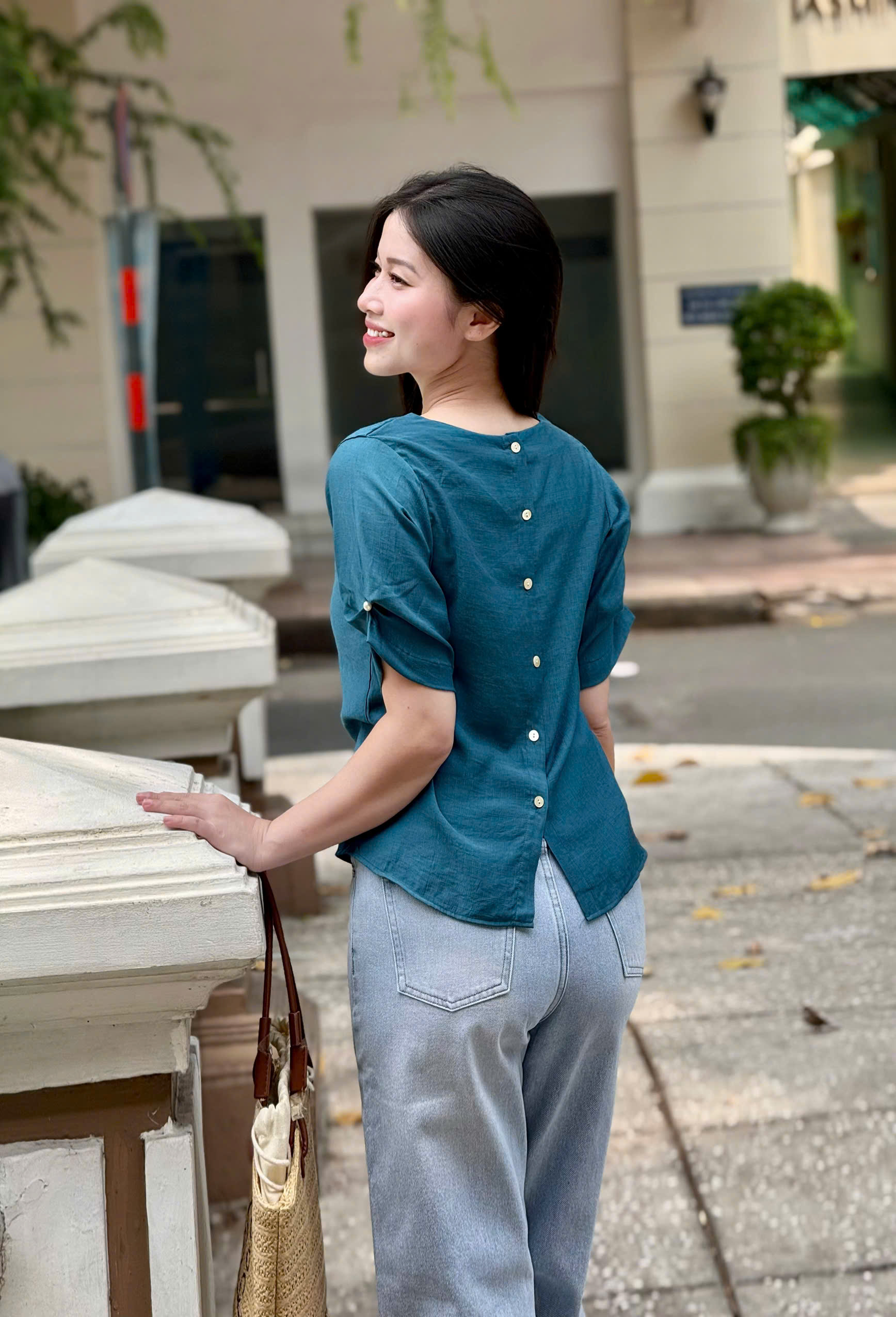 Phía sau phối hàng nút kết hợp ve cách điệu, tạo sự khác biệt tinh tế cho thiết kế.